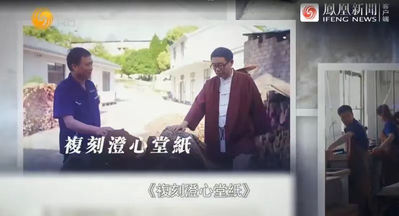 在黃山市凝霜文化發(fā)展有限公司,欄目攝制組全程記錄徽州楮皮紙第二代傳承人、非遺傳承人朱建新的徽州楮皮紙制作技藝?!段幕笥^園》總策劃、主持人王魯湘詳細(xì)了解徽州楮皮紙的優(yōu)勢,制作的傳承和發(fā)展,并與徽州楮皮紙第二代傳承人朱建新面對面暢聊古法造紙和新技的結(jié)合。