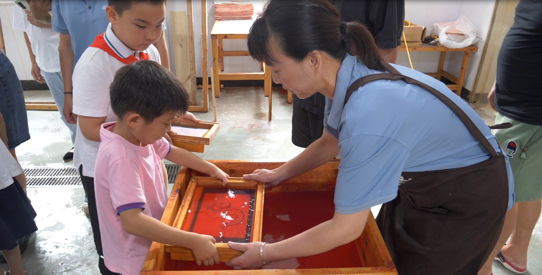 徽州楮皮紙制作工藝精湛,源遠(yuǎn)流長,是徽州文化乃至中華文化的重要瑰寶之一、是中國手工紙的巔峰之作。眼下正值暑假,休寧縣的黃山市凝霜文化發(fā)展有限公司的徽州楮皮紙古法造紙車間迎來了一批批前來研學(xué)體驗(yàn)的學(xué)生團(tuán)隊(duì),休寧這座“狀元城”掀起一波“非遺熱”。 撿皮、打漿、抄紙、烘紙
